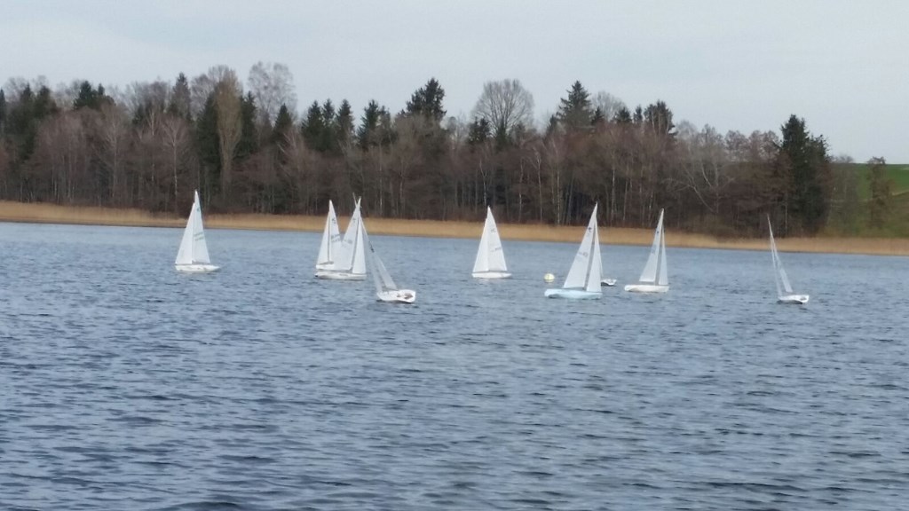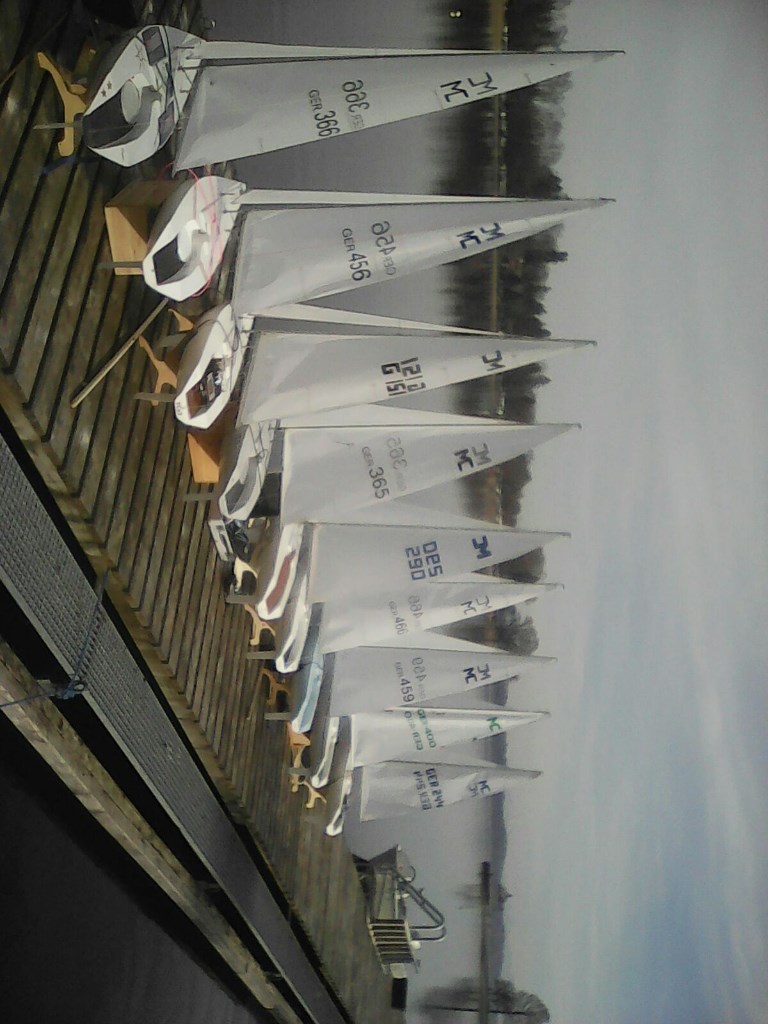 Um 14:00 war es soweit. Der Wind kam und es wurde sofort die 1. Wettfahrt angeschossen,