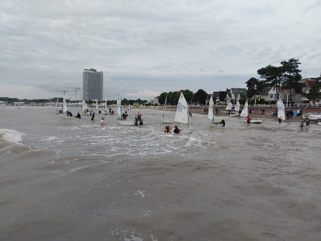 Das war für die Kleinsten sehr kräftezehrend, da die Opti-Bahn weit vor Travemünde lag und allein der Weg dorthin fast eine Stunde in Anspruch nahm. Entsprechend früh mussten die Kinder morgens auf das Wasser und kamen erst am späten Nachmittag wieder zurück.