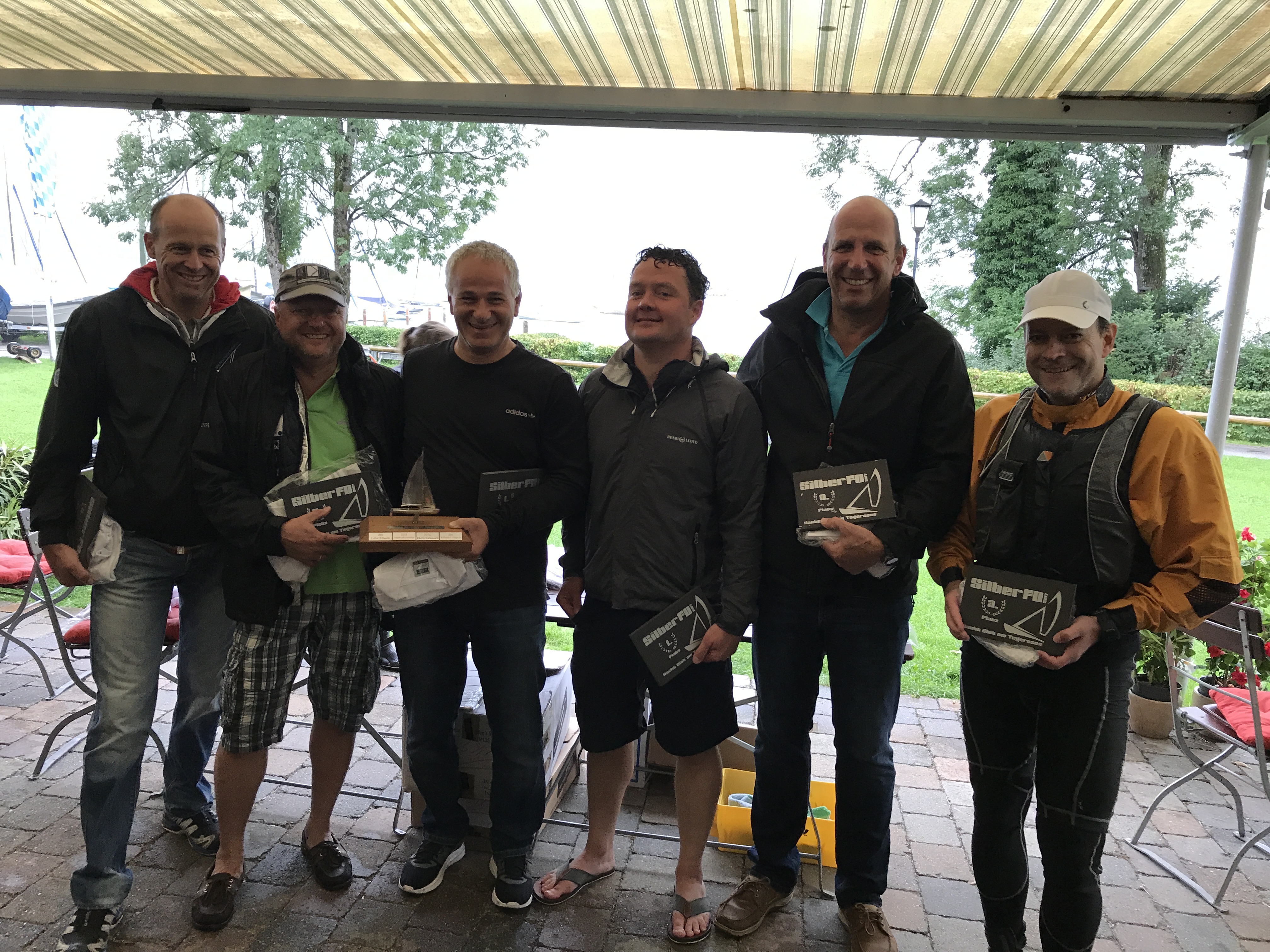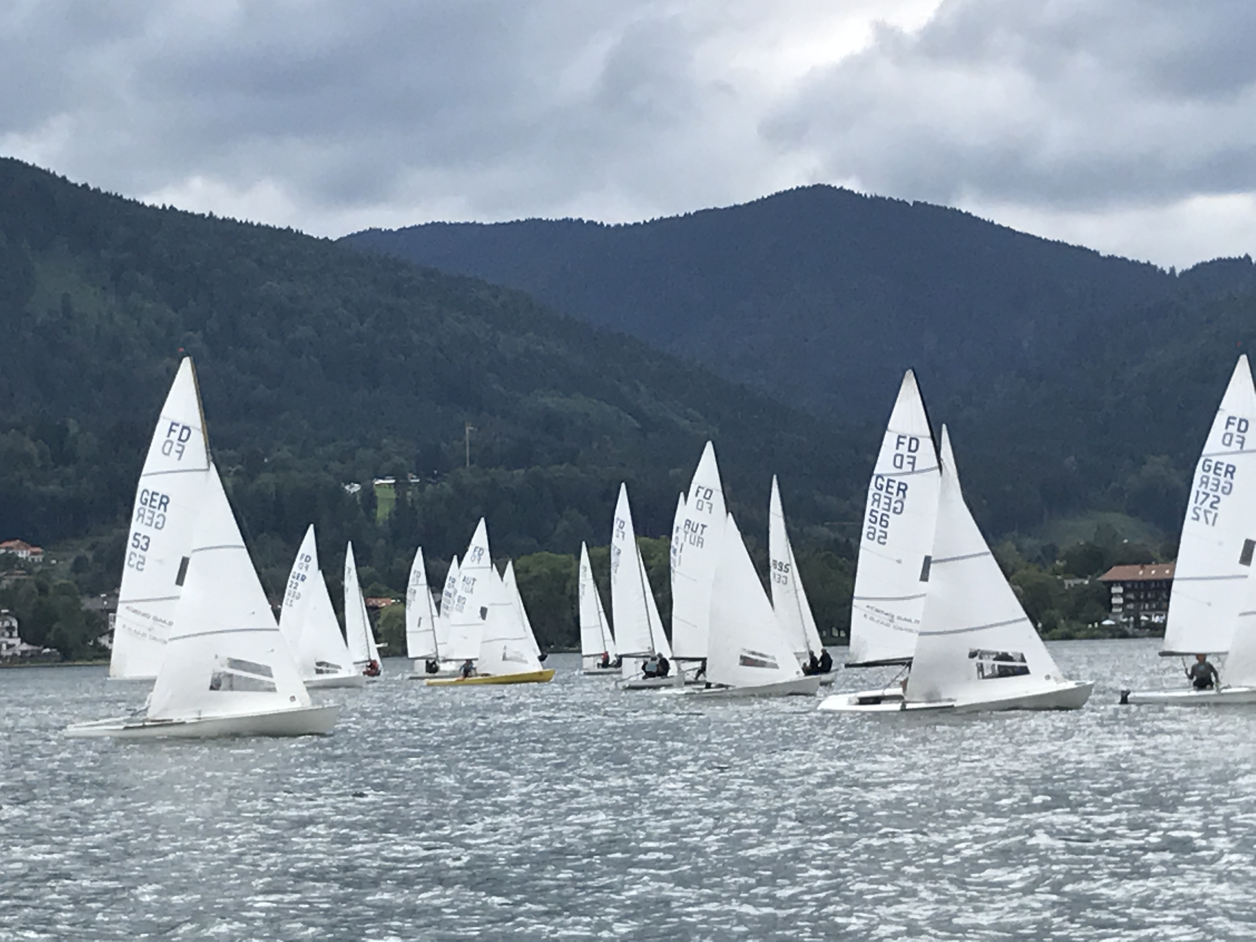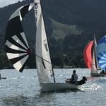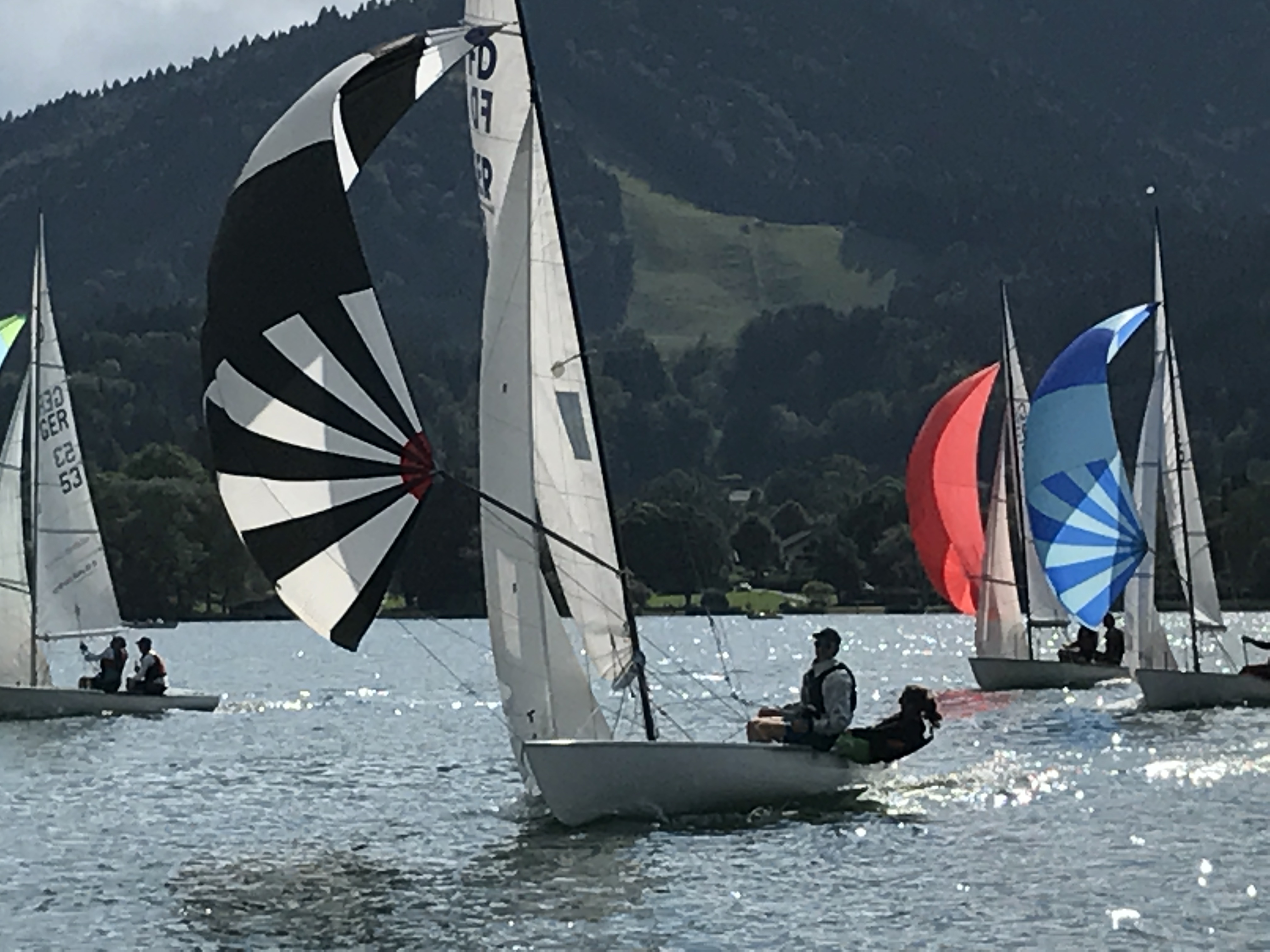 Nachdem am Samstag die meisten pünktlich angekommen sind und ihre Boote aufgebaut hatten, ging es nach kurzem Warten auf besseren Wind raus aufs Wasser. Gegen 14 Uhr gab es den ersten Start, bei dem es gleich mal einen allgemeinen Rückruf gab. Daraufhin gab es dann einen „normalen“ Start. Von Anfang war Ger 98 mit Shmuel Markhoff und Kilian König ganz vorne dabei auch für uns sah es anfangs recht gut aus, da es aber sehr schwierige Windverhältnisse waren kamen wir am Ende der Wettfahrt leider nur als 11ter ins Ziel während Ger 98 souverän als erstes Schiff im Ziel war. Bei der zweiten Wettfahrt war es ein ähnliches Spiel und wir kamen als 10ter ins Ziel. Nach zwei Wettfahrten war auch Schluss für Samstag und es ging an Land zum Hendl essen. Für Sonntag war für 10 Uhr Auslaufbereitschaft angekündigt, doch auch hier gab es erst einmal Startverschiebung. Wegen des Dauerregens konnte sich der Wind nicht richtig durchsetzen. Dann kam doch noch ein bisschen Wind und die letzte Wettfahrt wurde gestartet. Auch hier drehte und böte der Wind nach Lust und Laune. Nachdem wir dann während der Wettfahrt immer wieder viele Plätze gewannen und auch wieder verloren kamen wir dann als 6ter ins Ziel. Insgesamt landeten wir nach allen drei Wettfahrten auf dem 8. Platz. Auch wenn sich der Tegernsee nicht von seiner schönsten Seite gezeigt hat, war es eine schöne Regatta! Also man sieht sich am Achensee.