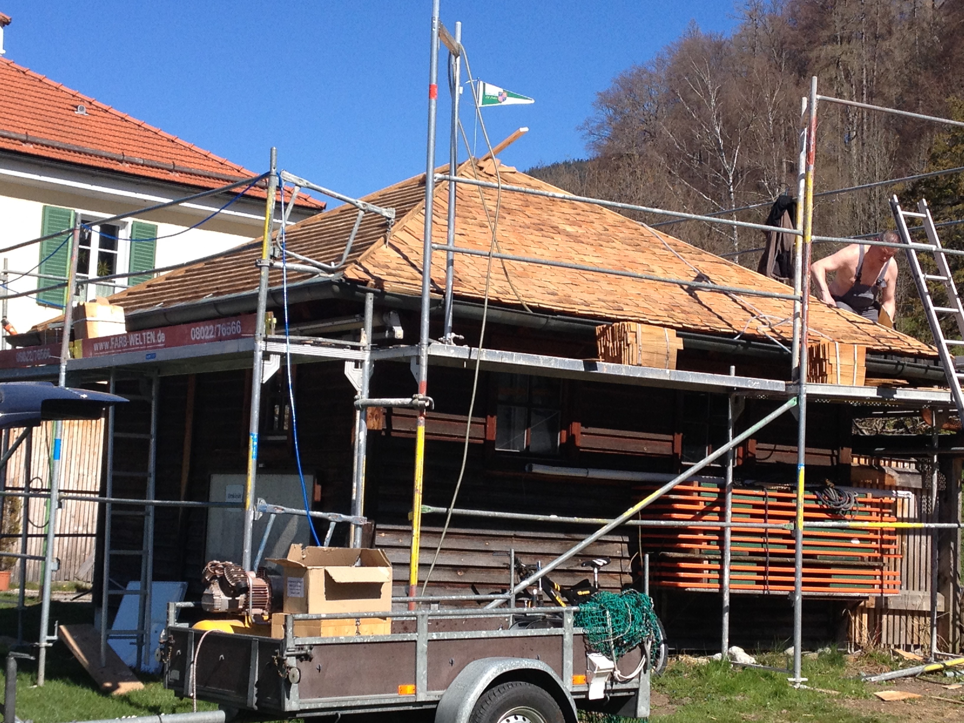 Wir möchten uns ganz herzlich beim Spender der Schindeln, Herrn Erik Weidinger, sowie den tatkräftigen Helfern (Erik Weidinger, Fam. Kellermann, Helmut Steiner, Peter Koppany, Flori Rohrmoser) und vor allem unserem „Projektleiter“ Christian Schmidt bedanken. Christian ist eigentlich immer dabei wenn es etwas zu arbeiten oder bauen gibt.