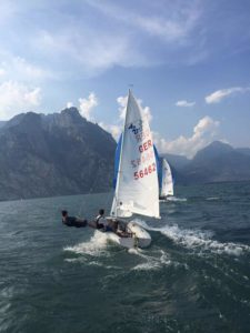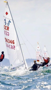 Die ausgeschriebenen 6 Qualifikations-Wettfahrten konnten bei idealen Bedingungen von 3-4 Beaufort an den ersten beiden Tagen gesegelt werden. Beide Teams vom YCaT qualifizierten sich für die Gold Fleet. Wegen extrem starken Wind konnten von den 4 vorgesehenen Wettfahrten in der Gold Fleet nur noch ein Rennen bei um die 30 Knoten (Windstärke 7) gesegelt werden. Auch bei diesen Starkwindverhältnissen hielten sich die Beiden im letzten Lauf mit einem 9. Platz für Luis und einem 32. Platz für Kathrin hervorragend. Dann war Schluss: Sturm auf der Ostsee!